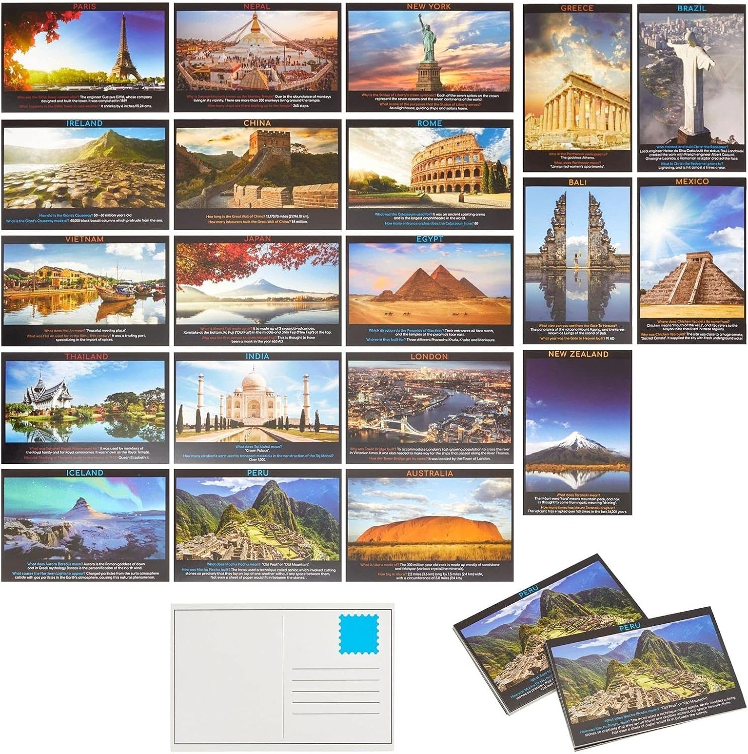 Educational And Fun: Pipilo Press Travel Fun Fact Postcards offer an engaging way for children and adults to learn about landmarks around the world. Featuring vibrant designs, these educational postcards make a perfect addition to geography-themed activities and teacher resources.