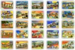 This set features a full assortment of retro state travel reprints, each with a different large-letter design inspired by the 1930s–1940s style. A perfect mix of history and artistry in one pack.